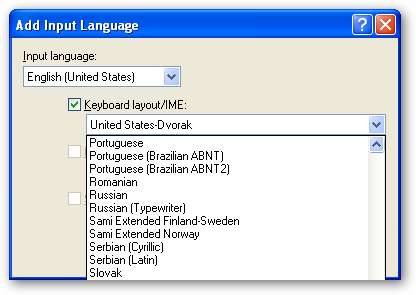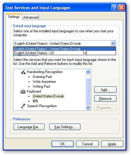Klicken Sie auf die Schaltfläche "OK" und Sie kehren zu diesem Bildschirm zurück. Jetzt wird jedoch die Einstellung "USA-Dvorak" hinzugefügt.