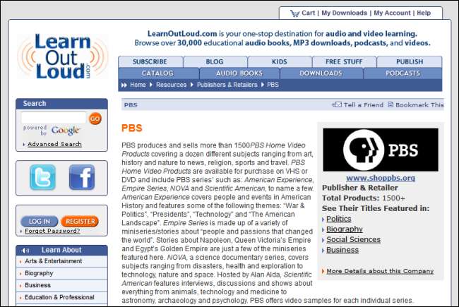 PBS-Podcasts wie der American Experience Podcast, die NewsHour mit Jim Lehrer und der NOVA Podcast sind auf LearnOutLoud.com (bereits erwähnt) verfügbar. In naher Zukunft wird LearnOutLoud.com einen Datenfeed aller vorgestellten PBS-Videos bereitstellen.
