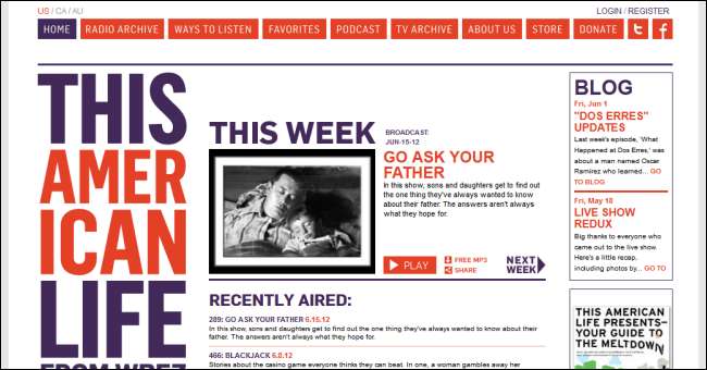 Dieses amerikanische Leben ist eine wöchentliche öffentliche Radiosendung, die auf mehr als 500 Sendern an etwa 1,8 Millionen Hörer ausgestrahlt wird. Zu jeder Episode gibt es ein Thema und eine Vielzahl von Geschichten zu diesem Thema. Meistens handelt es sich um wahre Geschichten alltäglicher Menschen. Sie können auch alte Radiosendungen von ihren hören Archiv .