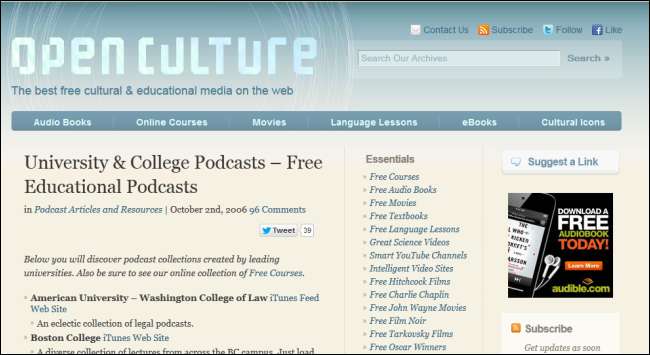 Offene Kultur bietet eine Sammlung von Bildungs-Podcasts, die von führenden Universitäten erstellt wurden. Hierbei handelt es sich nicht um Vorlesungen, sondern um Informationen zu verschiedenen Themen wie Wissenschaft und Recht. Einige behandeln interne Themen innerhalb der Universitäten.
