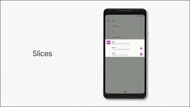In ähnlicher Weise zieht Slices bestimmte Ausschnitte von Apps heraus, um einen schnellen und integrierten Zugriff auf die wichtigen Teile zu ermöglichen, wenn Sie sie benötigen. Es ist nicht ganz klar, wie das funktionieren wird, aber es klingt cool.