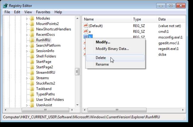Löschen Sie ein einzelnes Element aus der MRU-Liste des Dialogfelds Ausführen