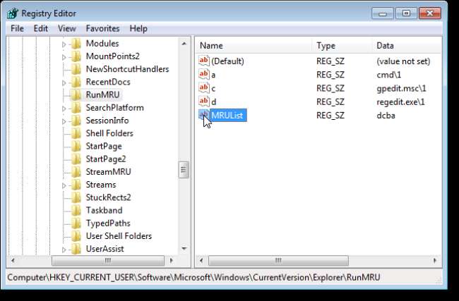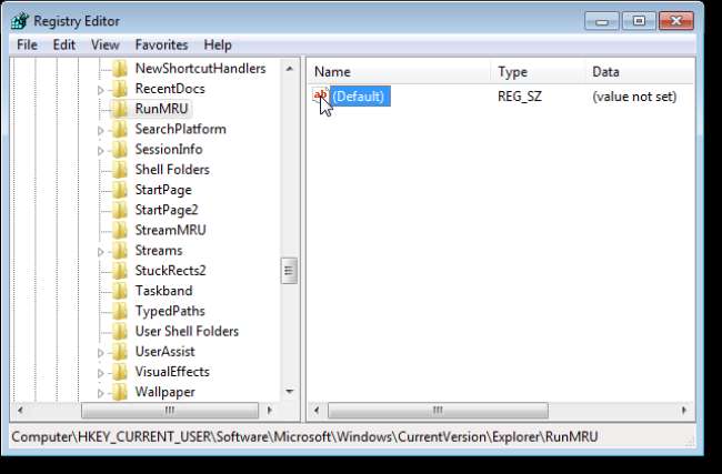 HKEY_CURRENT_USER / Software / Microsoft / Windows / CurrentVersion / Explorer / RunMRU