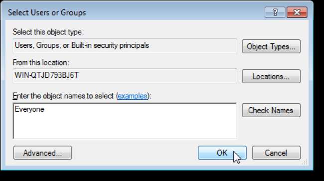 Geben Sie "Jeder" in das Feld Geben Sie die zu bearbeitenden Objektnamen ein und klicken Sie auf OK.
