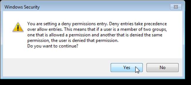 Ein Warndialogfeld mit Informationen zu Einträgen verweigern wird angezeigt. Klicken Sie auf Ja, um Ihre Änderung zu akzeptieren und fortzufahren.