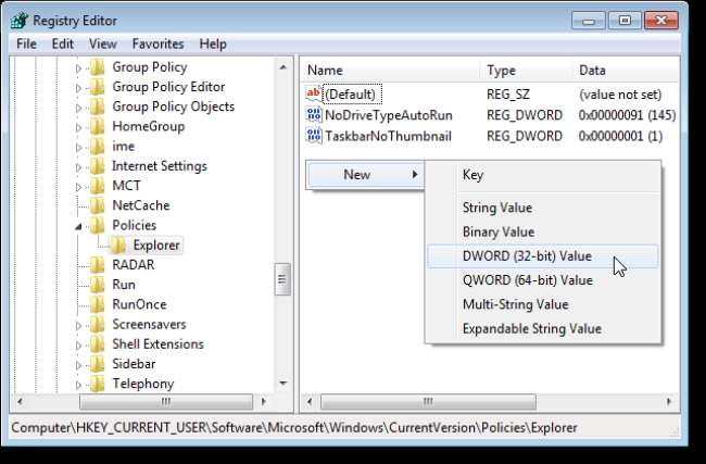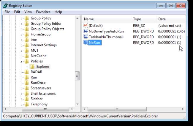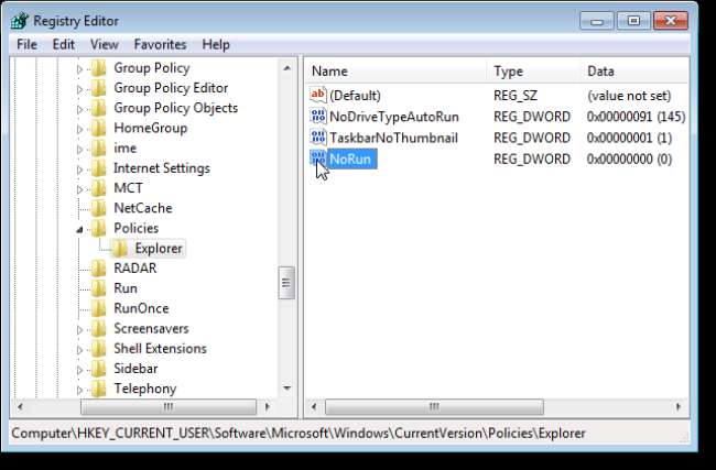 HKEY_CURRENT_USER \ Software \ Microsoft \ Windows \ CurrentVersion \ Policies \ Explorer