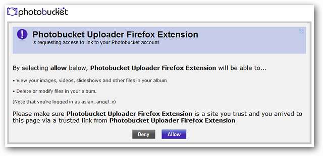 Photobucket Uploader bietet eine schnelle und einfache Möglichkeit, Bilder mit Firefox in Ihr Photobucket-Konto hochzuladen. Habe Spaß!