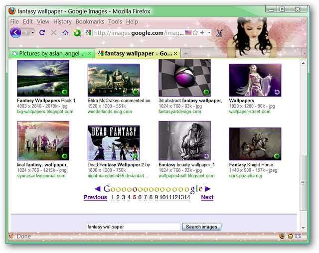 Zeit, Dinge auszuprobieren! Wir haben uns für eine Bildsuche bei Google nach Fantasy-Hintergrundbildern entschieden und das Bild in der unteren linken Ecke ausgewählt.