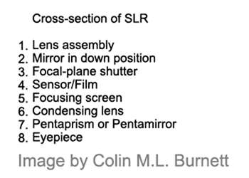 Single Lens Reflex oder SLR-Kameras waren die Antwort auf das Parallaxenproblem. Mit einem cleveren Mechanismus beweglicher Teile reflektieren Spiegelreflexkameras das durch das Objektiv kommende Licht zu optischen Suchern (und zum Auge des Fotografen). Wenn der Auslöser gedrückt wird, bewegt sich der Spiegel, und dasselbe Licht durch dieselbe einzelne Linse kann das Bild auf dem lichtempfindlichen Film belichten.