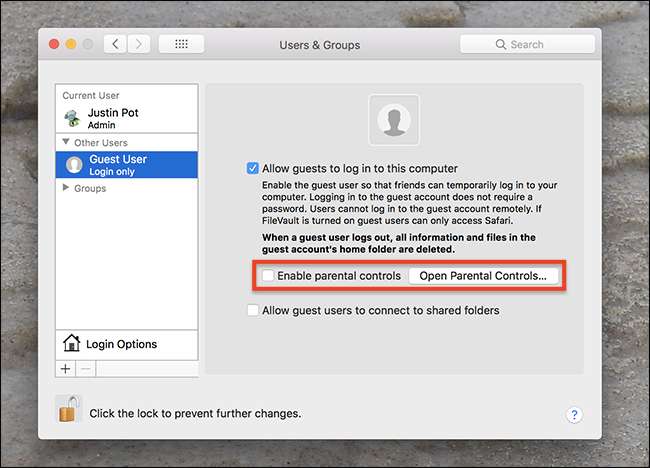 Sie können die Kindersicherung für Ihr Gastkonto deaktivieren, indem Sie auf Systemeinstellungen> Benutzer und Gruppen klicken.