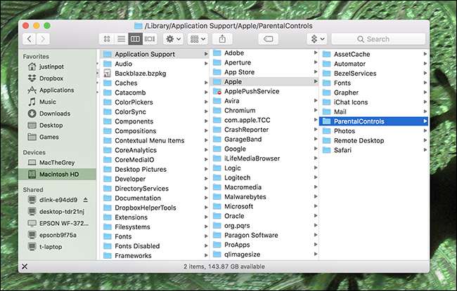 Gehen Sie als Nächstes im Finder zu / Library / Application Support / Apple / und suchen Sie nach dem Ordner "ParentalControls".
