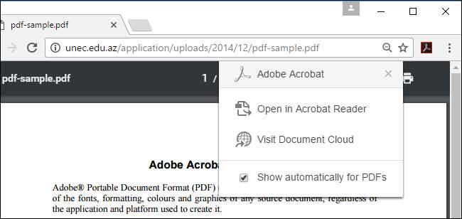 Über die Symbolleistenschaltfläche der Erweiterung können Sie auch schnell von der Anzeige von PDF-Dateien zum Öffnen in Acrobat Reader DC auf Ihrem Desktop wechseln.