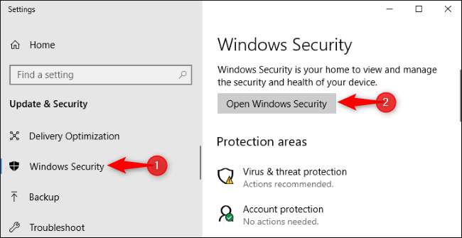 Um es zu finden, gehen Sie zu Einstellungen> Update & Sicherheit> Windows-Sicherheit> Windows-Sicherheit öffnen oder starten Sie einfach die Verknüpfung "Windows-Sicherheit" aus Ihrem Startmenü.