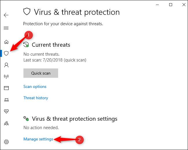 Klicken Sie auf die Option "Viren- und Bedrohungsschutz" und dann auf den Link "Einstellungen verwalten" im Abschnitt "Einstellungen für Viren- und Bedrohungsschutz".
