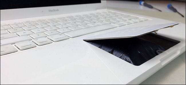 Am anderen Ende des Spektrums finden Sie extreme Beispiele, bei denen die Erweiterung der Batterie die umgebende Elektronik völlig aufreißt. Auf dem Foto unten mit freundlicher Genehmigung von Reddit Benutzer iNemzis und / r / TechSupportGore können Sie sehen, wie stark die Erweiterung eines MacBook-Akkus war, dass das Trackpad tatsächlich aus dem Rahmen des Laptops gerissen wurde.
