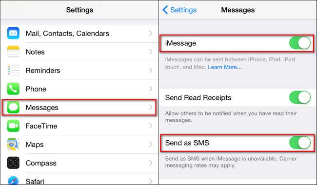 Im obigen Bild sehen Sie unter Einstellungen -> Nachrichten -> iMessage, wo sich die Einstellung befindet. Beachten Sie, dass wir auch die Funktion "Als SMS senden" hervorheben (und empfehlen, sie aktiviert zu lassen). Wenn Sie diesen Schalter deaktivieren, sendet jede iMessage, die Sie an einen anderen iMessage-Benutzer senden, nur über das iMessage-Netzwerk, das von der Datenverbindung abhängig ist. Wenn Sie sicherstellen möchten, dass der Text auch dann immer durchkommt, wenn iMessage nicht verfügbar ist, möchten Sie, dass dies überprüft wird.