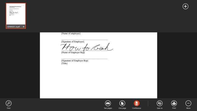Στο παρελθόν, έχουμε καλύψει μια ποικιλία τρόποι υπογραφής ηλεκτρονικών εγγράφων χωρίς εκτύπωση . Μερικά από αυτά τα κόλπα περιελάμβαναν την υπογραφή ενός κομματιού χαρτιού, τη λήψη μιας φωτογραφίας με την κάμερα web και την εφαρμογή αυτής της καταγεγραμμένης υπογραφής σε έγγραφα. Με γραφίδα υψηλής ποιότητας όπως αυτή που περιλαμβάνεται στο Surface Pro, δεν χρειάζεται να χρησιμοποιείτε τέτοια κόλπα. Στην πραγματικότητα, μπορείτε να χρησιμοποιήσετε το Surface Pen για να υπογράψετε PDF απευθείας στην οθόνη σας και να αποθηκεύσετε γρήγορα την υπογραφή σας σε αυτά. Αυτό είναι ακόμη δυνατό με την ενσωματωμένη εφαρμογή PDF Reader, οπότε δεν χρειάζεστε άλλα εργαλεία.