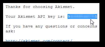 Τώρα θα λάβετε ένα email που περιέχει το κλειδί API σας. Αντιγράψτε το και, στη συνέχεια, επιστρέψτε στη σελίδα προσθηκών στον πίνακα ελέγχου του WordPress για να ολοκληρώσετε τη ρύθμιση του Akismet.