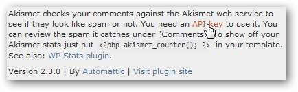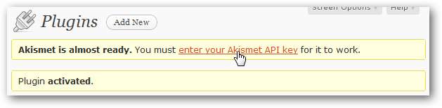 Η σελίδα θα ανανεωθεί και θα σας ενημερώσει ότι η προσθήκη είναι έτοιμη για χρήση. Κάντε κλικ στο εισαγάγετε το κλειδί API Akismet σύνδεσμος για να ολοκληρώσετε τη ρύθμιση.