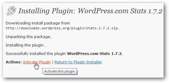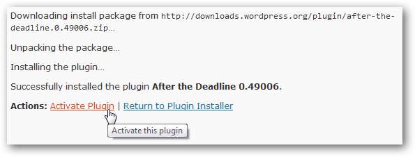Το WordPress θα κατεβάσει και θα εγκαταστήσει αυτόματα την προσθήκη. Όταν τελειώσει, κάντε κλικ στο Ενεργοποίηση προσθήκης σύνδεσμος στο κάτω μέρος.