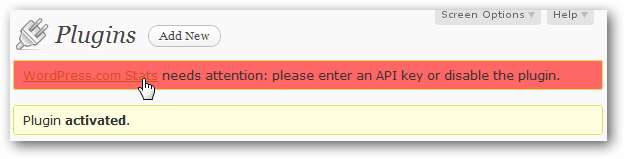 Θα δείτε ένα banner στη σελίδα προσθηκών που θα σας ενημερώνει ότι το Stats χρειάζεται ένα κλειδί API. Κάντε κλικ στο Στατιστικά WordPress.com σύνδεσμος στο banner.