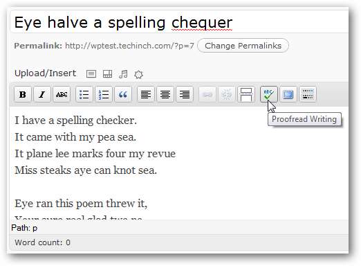 Τώρα, όποτε επεξεργάζεστε μια ανάρτηση στο διαδικτυακό πρόγραμμα επεξεργασίας του WordPress, μπορείτε να κάνετε κλικ στο αλφάβητο κουμπί για να ελέγξετε τη γραφή σας.