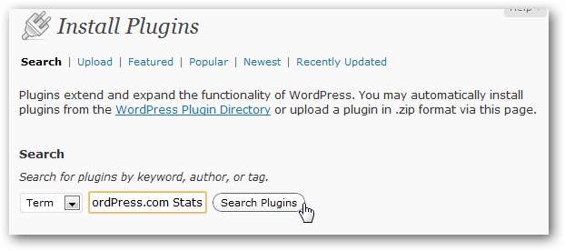 Εισαγω Στατιστικά WordPress.com στο πλαίσιο αναζήτησης και κάντε κλικ στο Αναζήτηση προσθηκών .