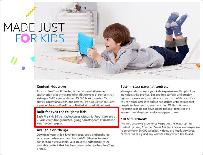 Για μένα, αυτός είναι ο καλύτερος λόγος για να αγοράσω το tablet Kids Edition. Βασικά, εάν το παιδί σας (ή εσείς, για αυτό το θέμα) σπάσει το tablet Kids Edition οποιαδήποτε στιγμή εντός των δύο πρώτων ετών, μπορείτε να το επιστρέψετε στο Amazon και να πάρετε έναν αντικαταστάτη. Είναι ένα τεράστιος ορθούμαι. Φοβερό, ακόμα κι αν ψάχνετε να αγοράσετε ένα tablet για εσάς και δεν σκοπεύετε να το μοιραστείτε με το παιδί σας, αυτός είναι ένας καλός λόγος για να αποκτήσετε το Kids Edition.