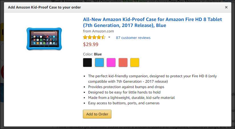 Τέλος, υπάρχει το Παιδική θήκη . Αυτός ο προφυλακτήρας αφρού έχει σχεδιαστεί για να προστατεύει το tablet σε περίπτωση πτώσης (ή ρίψης, χωρίς κρίση εδώ) και άλλων ατυχών ατυχημάτων που μπορεί να προκύψουν κατά τη διάρκεια ζωής της συσκευής. Πρόκειται για πρόσθετο 30 $ για το τυπικό Fire HD 8, αλλά περιλαμβάνεται σε όλα τα tablet Kids Edition.