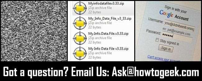 Μία φορά την εβδομάδα μοιραζόμαστε τρεις από τις ερωτήσεις που έχουμε απαντήσει από τα Εισερχόμενα Ρωτήστε HTG με τη μεγαλύτερη αναγνωσιμότητα. αυτήν την εβδομάδα εξετάζουμε τις προφυλάξεις οθόνης λευκού θορύβου, τα αποτελεσματικά συστήματα ονομάτων αρχείων και την ανάκαμψη από έναν συμβιβασμό κωδικού πρόσβασης.