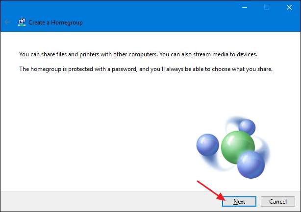 Κάντε κλικ στο «Επόμενο» στην πρώτη σελίδα του οδηγού «Δημιουργία οικιακής ομάδας».