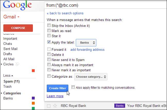 Δοκιμάστε να δημιουργήσετε φίλτρα που ταξινομούν αυτόματα τα εισερχόμενα email σας σε συγκεκριμένες ετικέτες. Για παράδειγμα, μπορείτε να λάβετε μηνύματα ηλεκτρονικού ταχυδρομείου από την Τράπεζά σας αυτόματα να λάβετε μια ετικέτα "Τράπεζα". Θα μπορούσατε τα προσωπικά email να λάβουν μια ετικέτα "Προσωπικά" και τα email εργασίας να λάβουν μια ετικέτα "Work". Οι αποδείξεις για τα προϊόντα που αγοράστηκαν θα μπορούσαν να λάβουν μια ετικέτα "Αποδείξεις". Δεν χρειάζεται να κάνετε αυτό το μέρος με μη αυτόματο τρόπο - απλώς ρυθμίστε το Gmail, ώστε να ταξινομήσει αυτόματα το email σας σε κατηγορίες για εσάς.