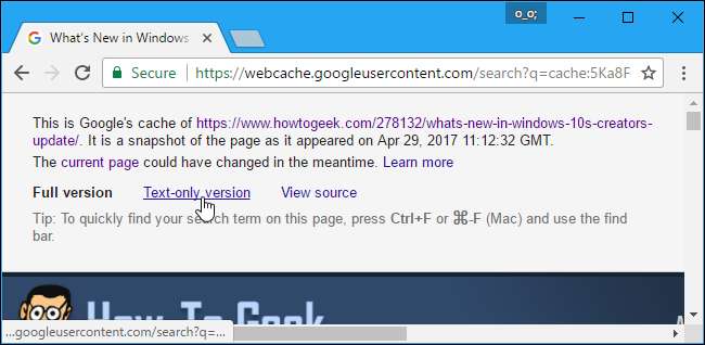 Υπάρχει επίσης ένας γρήγορος τρόπος για να δείτε το προσωρινά αποθηκευμένο αντίγραφο οποιασδήποτε ιστοσελίδας της Google χωρίς να περάσετε πρώτα από την αναζήτηση Google.