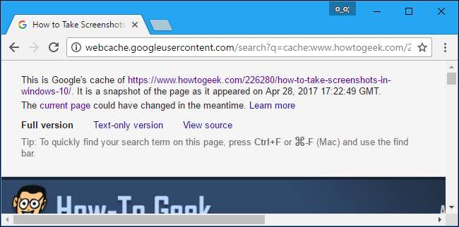 Θα δείτε επίσης την ημερομηνία και την ώρα κατά την οποία η Google δημιούργησε αυτό το προσωρινά αποθηκευμένο αντίγραφο που εμφανίζεται στην κορυφή της σελίδας.