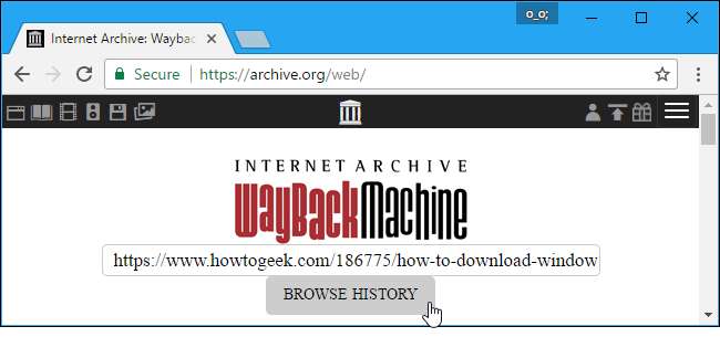 Για να χρησιμοποιήσετε το Wayback Machine, κατευθυνθείτε προς το Σελίδα Wayback Machine . Συνδέστε την πλήρη διεύθυνση της ιστοσελίδας που θέλετε να προβάλετε στο πλαίσιο και κάντε κλικ στο "Ιστορικό αναζήτησης". Για παράδειγμα, μπορείτε να αντιγράψετε και να επικολλήσετε αυτήν τη διεύθυνση από τη γραμμή διευθύνσεων του προγράμματος περιήγησής σας εάν δεν φορτωθεί μια ιστοσελίδα.