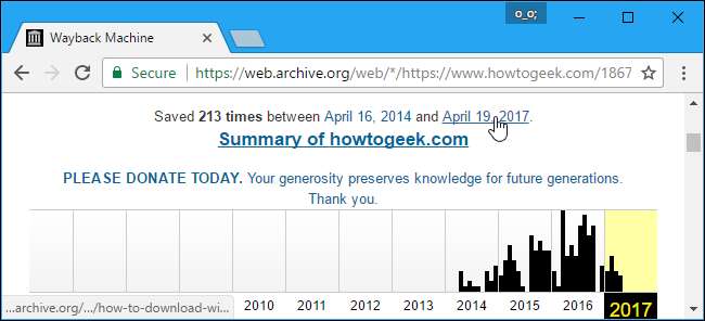 Εάν θέλετε απλώς να προβάλετε το πιο πρόσφατα αποθηκευμένο αντίγραφο μιας ιστοσελίδας, μπορείτε να κάνετε κλικ στην ημερομηνία στην κορυφή της σελίδας αρχειοθέτησης.