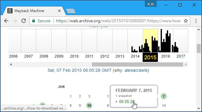 Εάν θέλετε ένα παλαιότερο αντίγραφο, μπορείτε να επιλέξετε ένα έτος και να κάνετε κλικ σε μια ημερομηνία στο ημερολόγιο για να δείτε την ιστοσελίδα όπως εμφανίστηκε εκείνη την ημερομηνία.