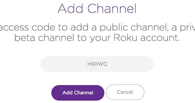 Πληκτρολογήστε τον κωδικό του ιδιωτικού καναλιού - επίσης γνωστός ως "κωδικός πρόσβασης καναλιού" ή "κωδικός πρόσκλησης" - στο πλαίσιο στον ιστότοπο του Roku. Κάντε κλικ στην επιλογή "Προσθήκη καναλιού" και το κανάλι θα προστεθεί στον λογαριασμό σας στο Roku και θα τεθεί σε ουρά για εγκατάσταση στο Roku.