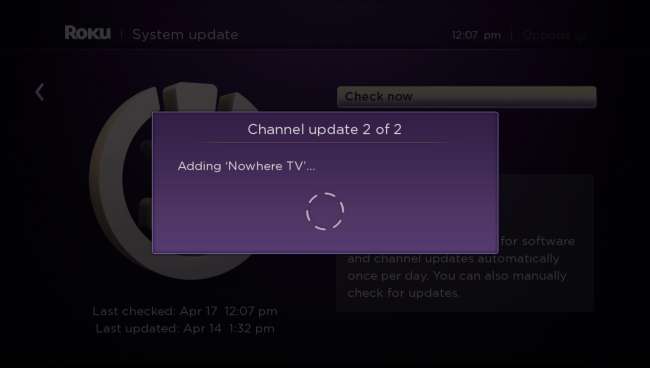 Για να το ελέγξετε και να κατεβάσετε το ιδιωτικό κανάλι αμέσως, ανοίξτε την οθόνη Ρυθμίσεις, επιλέξτε Σύστημα, επιλέξτε Ενημέρωση συστήματος και επιλέξτε "Έλεγχος τώρα". Το Roku θα κατεβάσει αυτόματα τυχόν νέα ιδιωτικά κανάλια που έχετε προσθέσει.