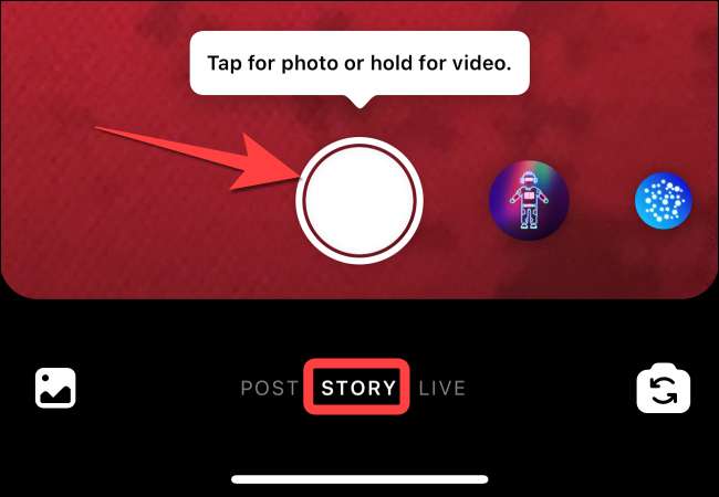 Βεβαιωθείτε ότι βρίσκεστε στην καρτέλα "ιστορία". Χτυπήστε το κουμπί λήψης για να κάνετε κλικ σε μια φωτογραφία ή να το κρατήσετε προς τα κάτω για να καταγράψετε ένα βίντεο.