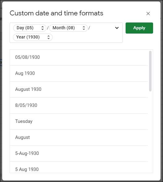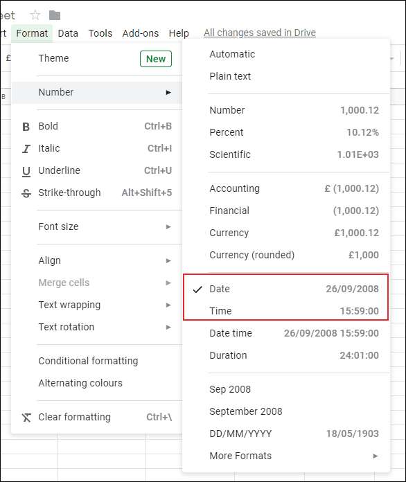 Μπορείτε να προσαρμόσετε περαιτέρω τη μορφοποίηση ημερομηνίας ή ώρας κάνοντας κλικ στο Μορφή> Αριθμός> Περισσότερες μορφές> Περισσότερες μορφές ημερομηνίας και ώρας.