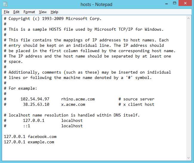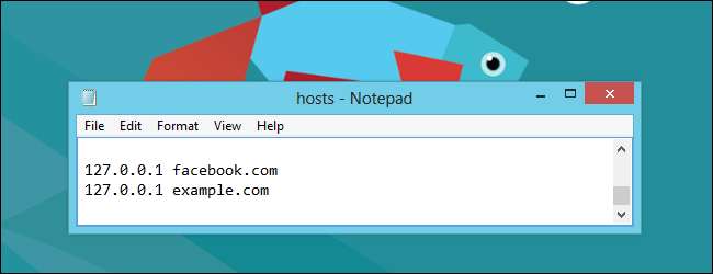 Το αρχείο Host σας είναι ένα αρχείο, τοπικό στον υπολογιστή σας, το οποίο μπορεί να παρακάμψει αυτήν τη συμπεριφορά. Με την επεξεργασία του αρχείου host σας, μπορείτε να τοποθετήσετε το Facebook.com σε οποιαδήποτε διεύθυνση IP θέλετε. Ορισμένα άτομα χρησιμοποιούν αυτό το τέχνασμα για να αποκλείσουν ιστότοπους - για παράδειγμα, μπορείτε να τοποθετήσετε το Facebook.com στο 127.0.0.1, που είναι η τοπική διεύθυνση IP του υπολογιστή σας. Όταν κάποιος προσπαθεί να αποκτήσει πρόσβαση στο Facebook.com στον υπολογιστή σας, ο υπολογιστής σας θα προσπαθήσει να συνδεθεί στον εαυτό του στο 127.0.0.1. Δεν θα βρει διακομιστή ιστού, επομένως η σύνδεση θα αποτύχει αμέσως.