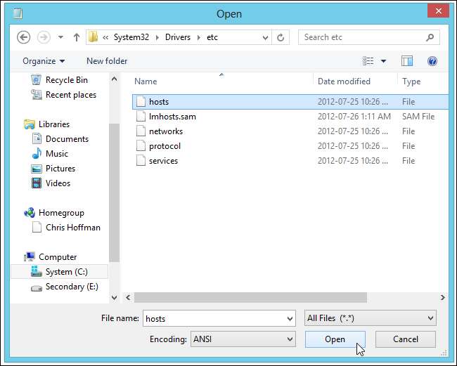 Κάντε κλικ στο Αρχείο -> Άνοιγμα στο παράθυρο Σημειωματάριο και μεταβείτε στο ακόλουθο αρχείο: