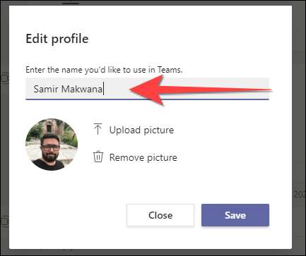 Εάν χρησιμοποιείτε την υπηρεσία Microsoft ομάδες σε ένα πρόγραμμα περιήγησης, αυτό φαίνεται αρκετά παρόμοια με την έκδοση desktop app και το καθιστά εύκολο να αλλάξει το εμφανιζόμενο όνομά σας.