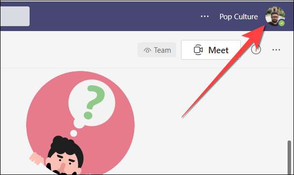 Ανοιξε Ομάδες της Microsoft σε ένα πρόγραμμα περιήγησης της επιλογής σας. Επιλέξτε το εικονίδιο του προφίλ σας στην επάνω δεξιά γωνία. Αυτό ανοίγει ένα drop-down μενού.