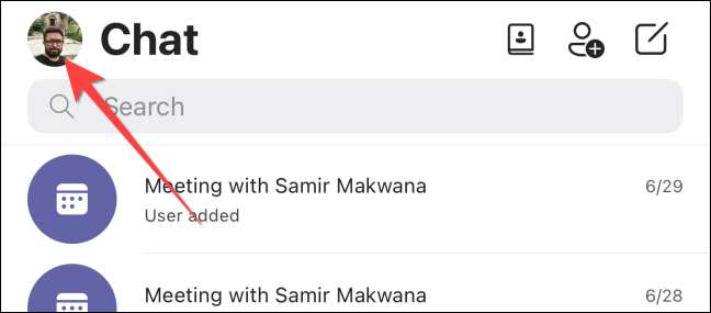 Ξεκινήστε την εφαρμογή Microsoft ομάδες στην κινητή συσκευή σας. Πατήστε στην εικόνα του προφίλ σας στο επάνω αριστερή γωνία της οθόνης.