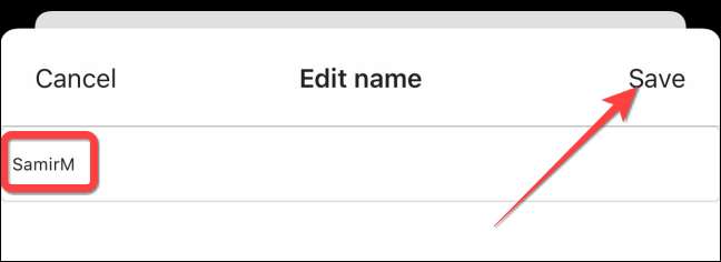 Σε iPhone ή iPad, μπορείτε να επιλέξετε υπάρχον όνομα σας για να ανοίξετε ένα μενού που σας επιτρέπει να πληκτρολογήσετε ένα νέο όνομα εμφάνισης.