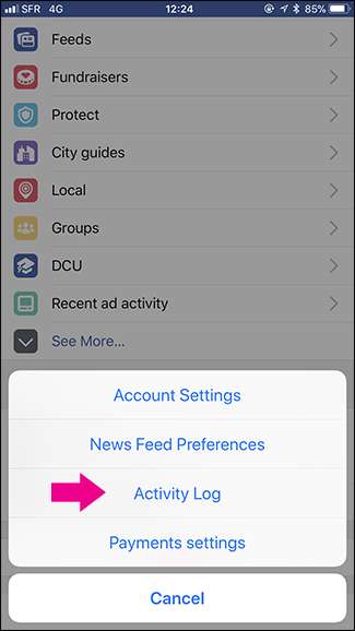 Πατήστε τις τρεις οριζόντιες γραμμές, μετακινηθείτε προς τα κάτω στη Βοήθεια και Ρυθμίσεις και, στη συνέχεια, επιλέξτε το στοιχείο "Αρχείο καταγραφής δραστηριότητας".
