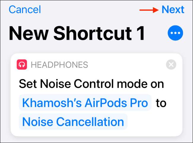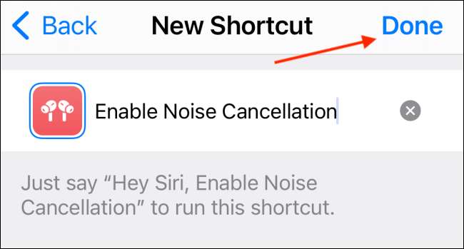συντόμευση σας θα αποθηκευτούν. Τώρα θα δημιουργήσουμε μια άλλη συντόμευσης για να απενεργοποιήσετε τη λειτουργία ακύρωσης θορύβου. Και αυτό μπορεί να γίνει πολύ εύκολα χρησιμοποιώντας τη λειτουργία διπλούν συντομεύσεις.