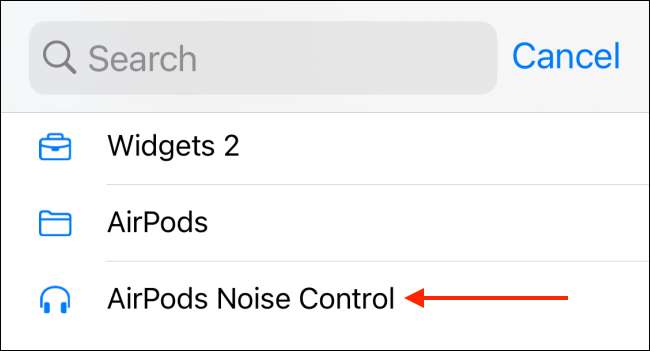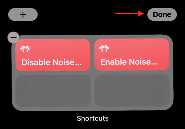 ο Widget συντομεύσεων σας δίνει μια επιλογή με ένα πάτημα για ενεργοποίηση ή απενεργοποίηση ακύρωσης θορύβου (ή αλλαγή σε ένα διαφορετικό τρόπο ελέγχου του θορύβου) απευθείας από την αρχική οθόνη.
